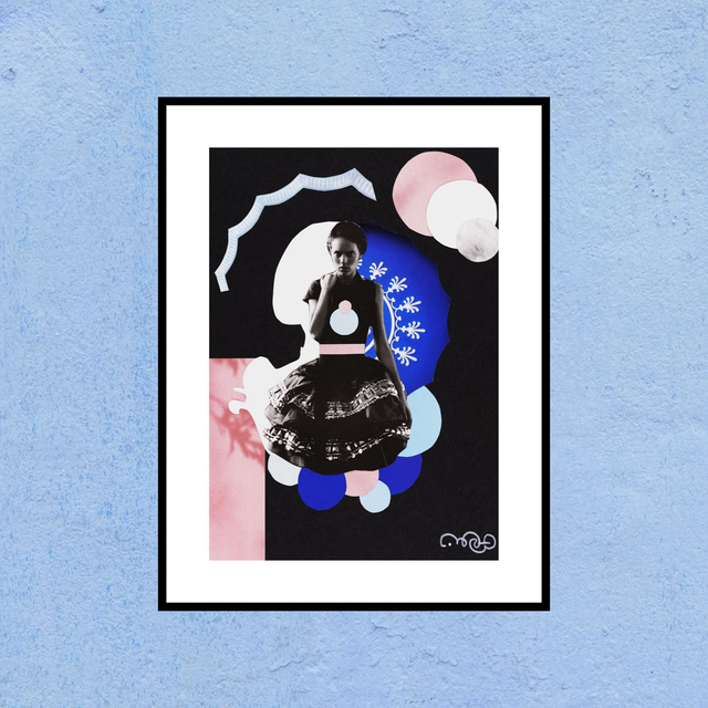 Collage original sur papier beaux-arts noir format A5.