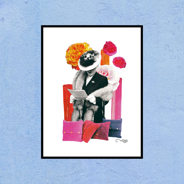 Collage réalisé à l'aide d'une carte postale et de magazines sur la décoration en en février 2025. Entièrement fait à la main de la découpe au collage.